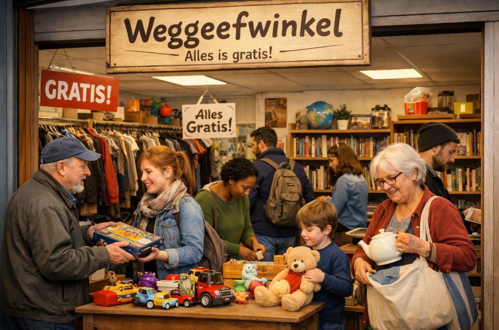 - Iedereen mogen goederen meenemen uit een weggeefwinkel.