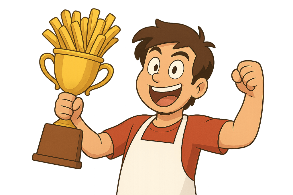 - De 1e (schrijf in letters) twee editie van het Wereldkampioenschap zijn winnen door/van frietbakker (Plural) uit Frankrijk.