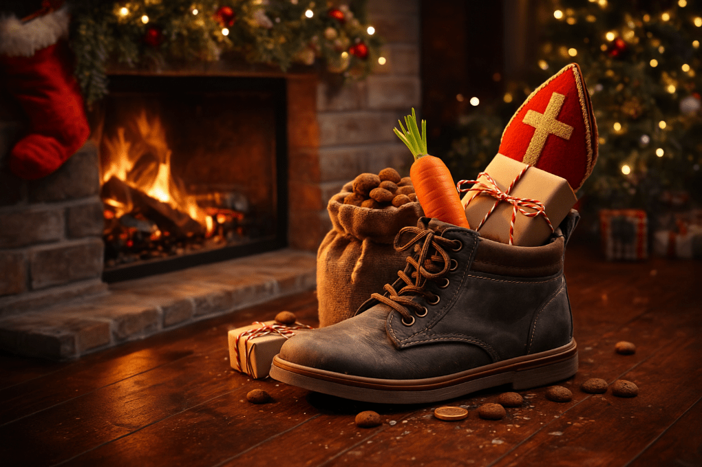 - Kinderen zetten hen/hun schoen naast de schoorsteen, of/op voor de deur, of/op bij het raam.
